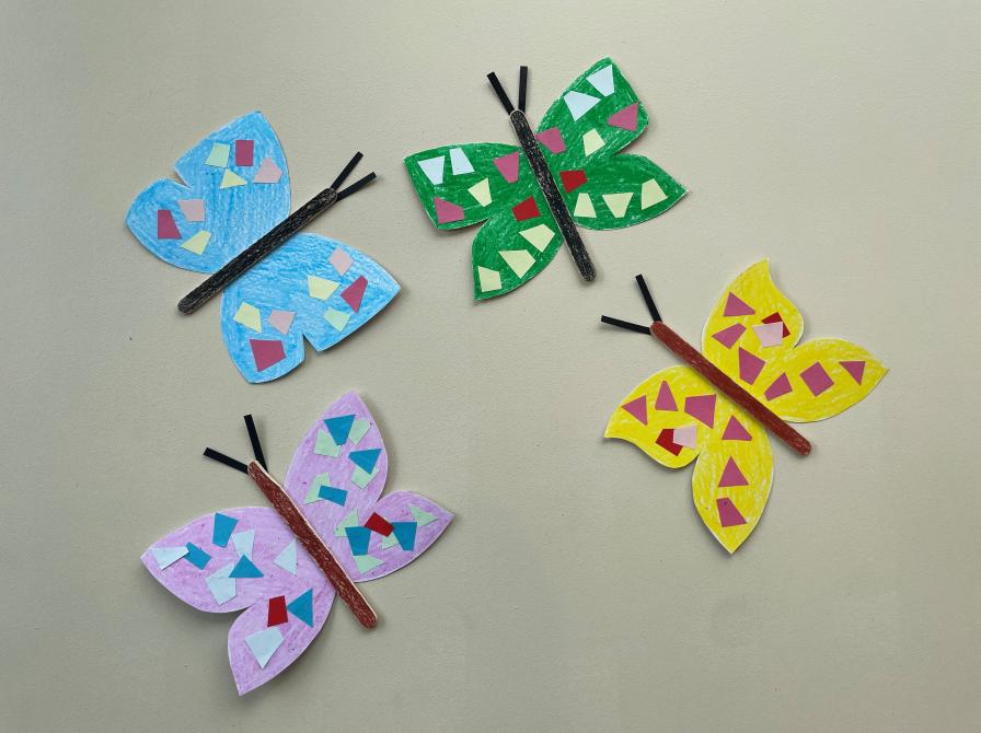 Kig ind og lav smukke sommerfugle i alverdens farver. Find inspiration blandt de mange sommerfugle, der hænger ved kreabordene, og lav jeres helt egne.