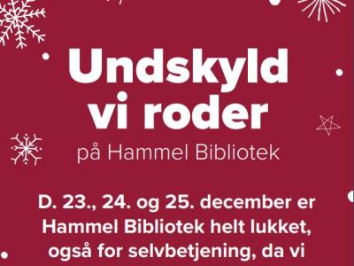 23.,24. og 25. december er Hammel Bibliotek helt lukket, også for selvbetjening, da hele gulvet skal behandles.